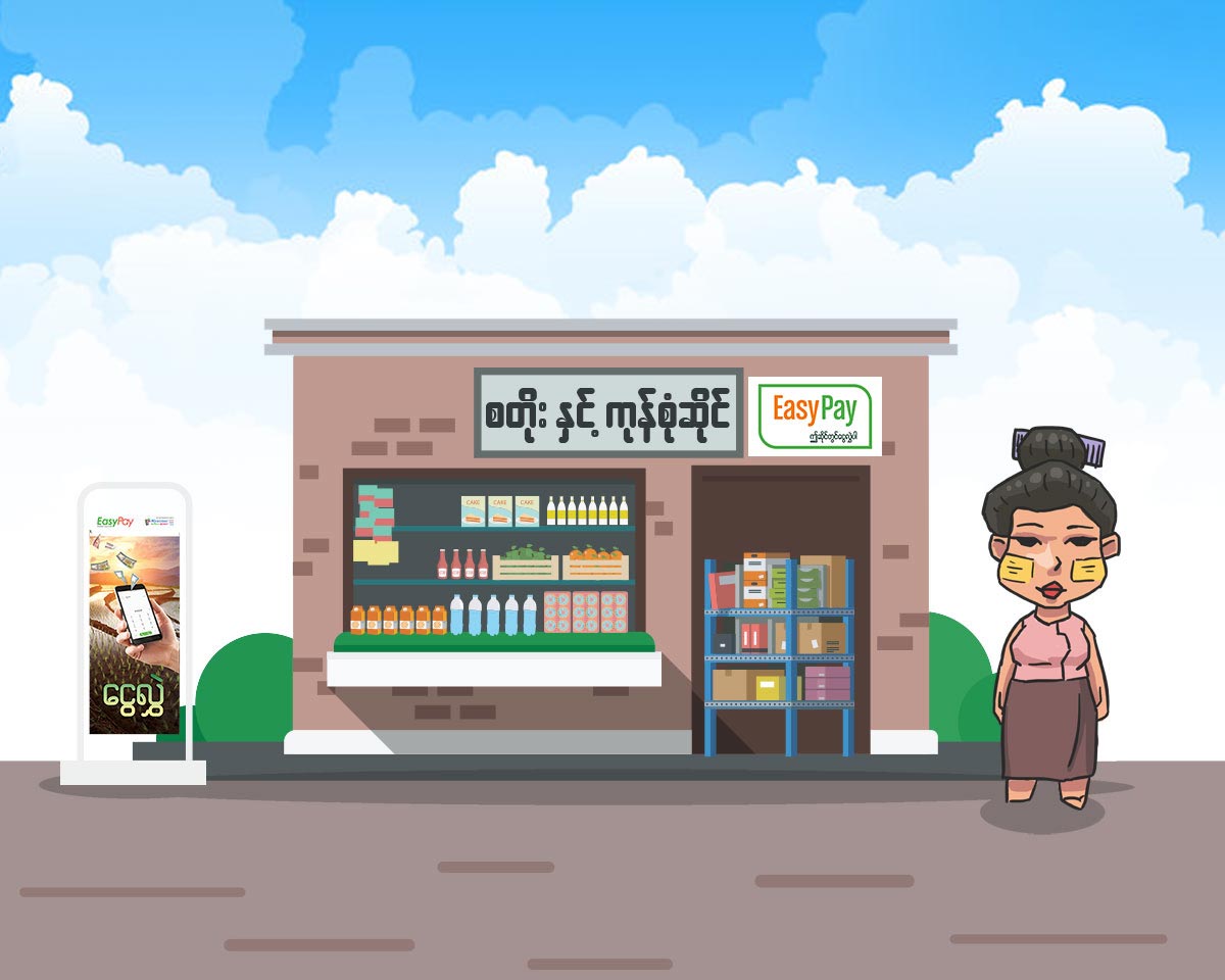 နီးစပ်ရာ Easy Pay ကိုယ်စားလှယ်, Myanmar Mobile Money ကိုယ်စားလှယ် (သို.) မြန်မာ့စီးပွားရေးဘဏ် နှင့် မြန်မာစာတိုက်လုပ်ငန်း ရှိရာတစ်နေရာသို့သွားရောက်၍...
