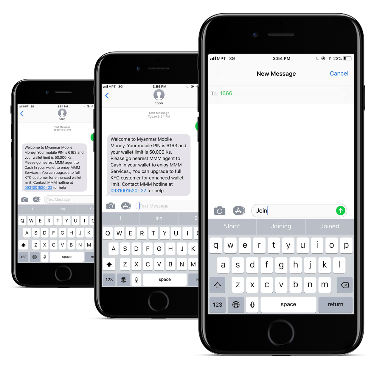 Easy Pay ငွေကြေးဝန်ဆောင်မှုကို စတင်အသုံးပြုလိုပါက မိမိဖုန်း (MPT/ MECTel) ဖုန်းမှ 1666 သို့ JOIN ဟု SMS..